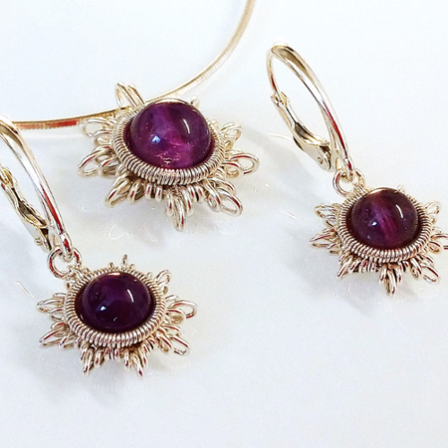 Strieborná drôtikovaná súprava “Kvietky” s Ametystami