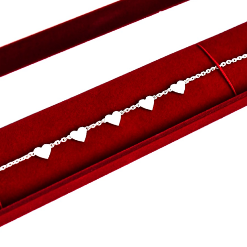 Strieborný náramok s piatimi srdiečkami