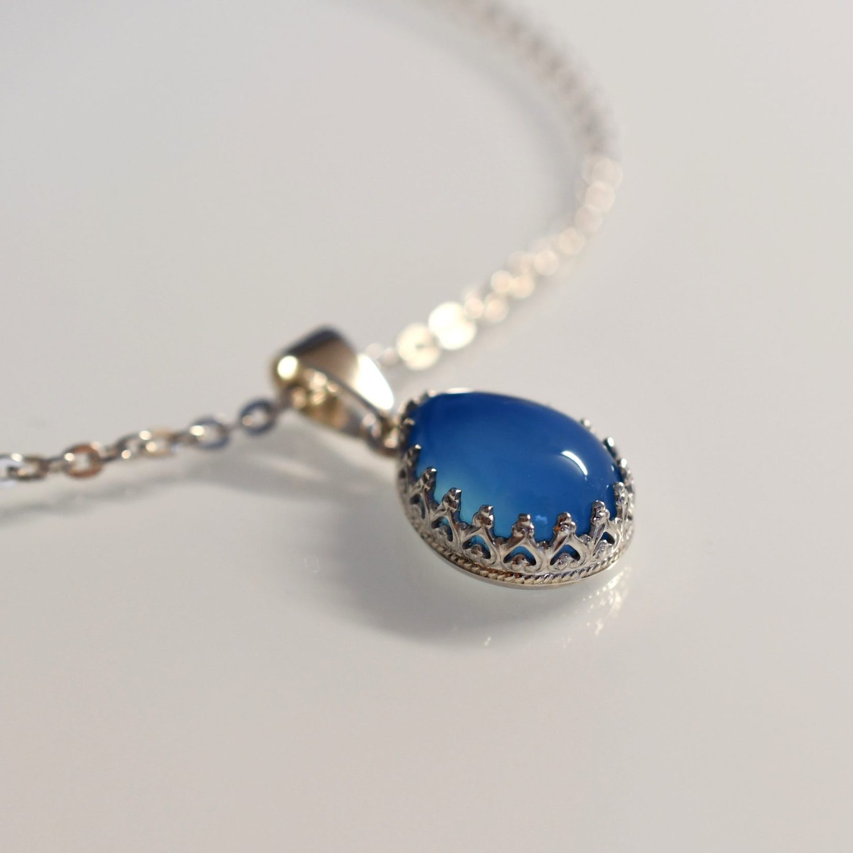 Tento nebesky modrý prívesok v tvare slzy je ručne vyrobený zo šperkového striebra (925/1000) a prírodného modrého Chalcedónu.