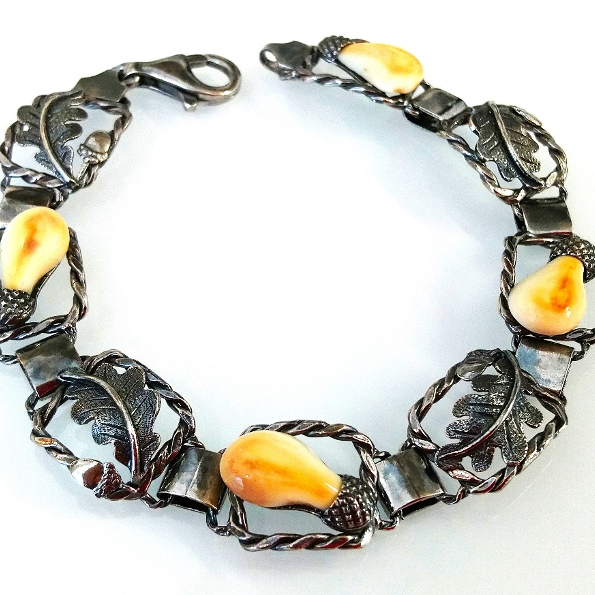 Náramok je vyrobený z dielikov. Každý dielik náramku je starostlivo vytvorený z prepletených drôtikov. Každý dielik zdobí jemný dubový list s drobným žaluďom alebo obruba v tvare žaluďa s grandlou.