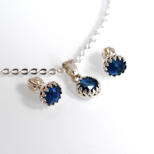 Táto elegantná strieborná súprava je ručne vyrobená zo šperkového striebra 925/1000 a z prírodných brúsených modrých Kyanitov.