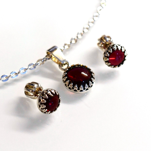 Táto elegantná strieborná súprava, je ručne vyrobená zo šperkového striebra s rýdzosťou 925/1000 a z prírodných červených Granátov.