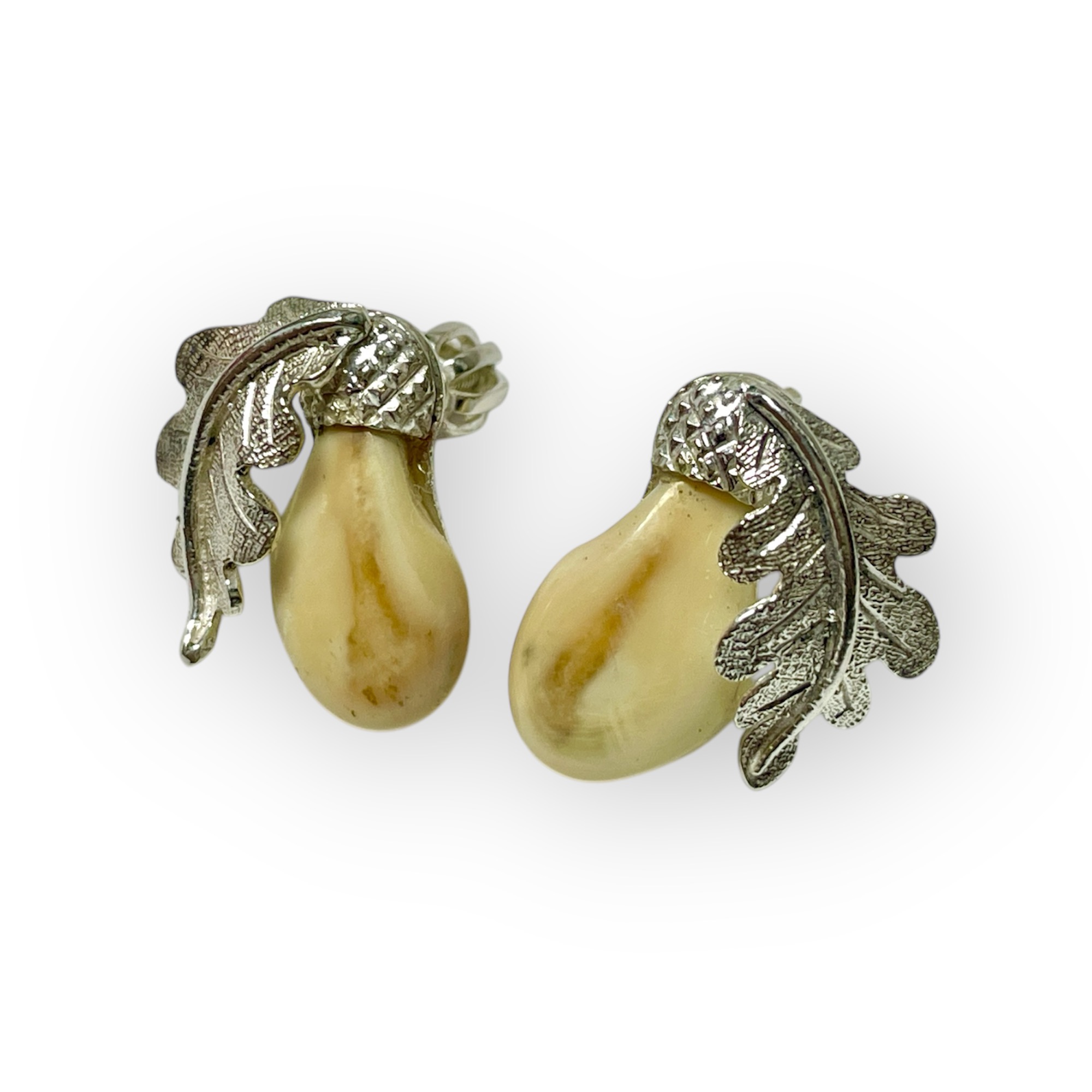 Náušnice v tvare žaluďa s dubovým lístkom zdobia prírodné jelenie grandle.