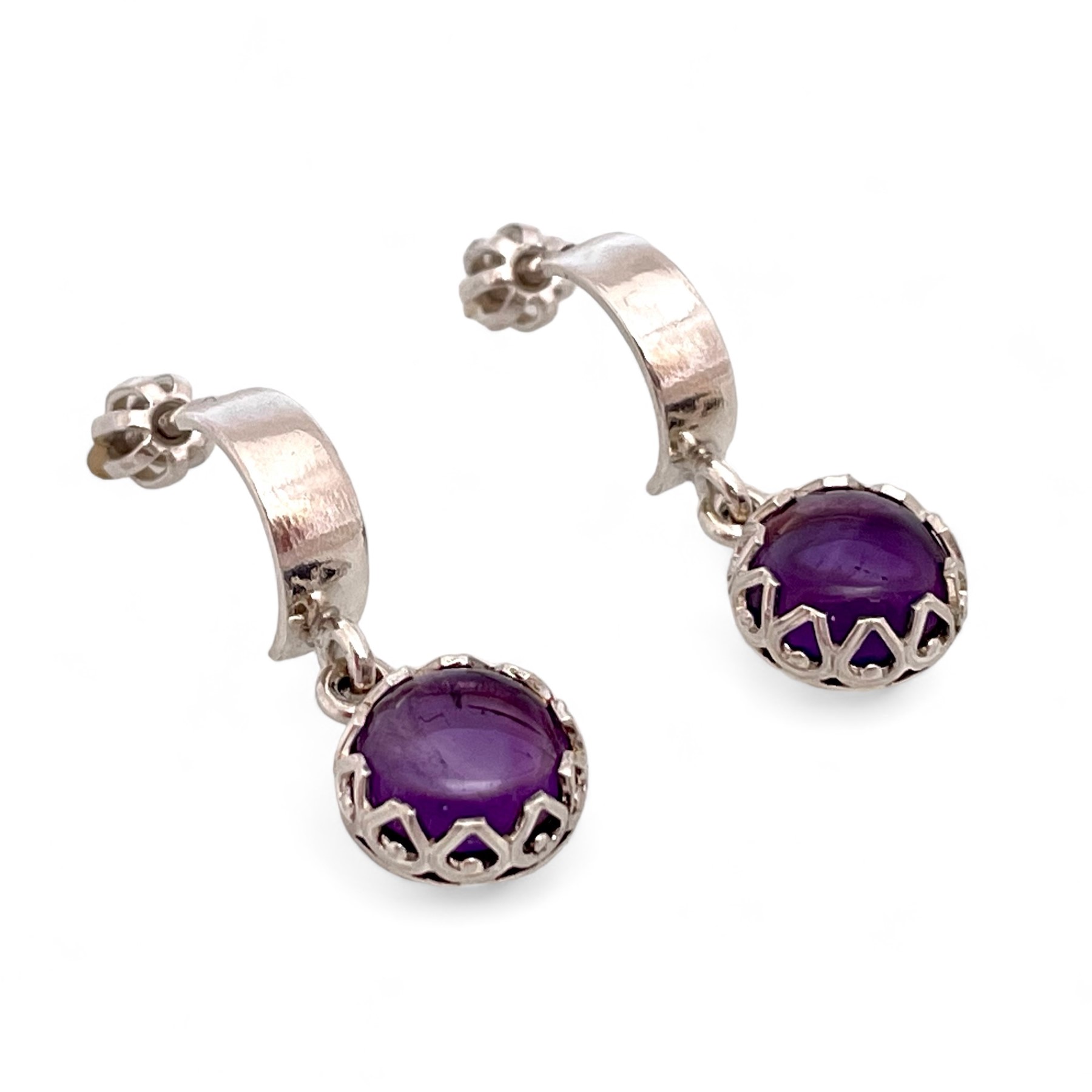 Náušnice sú ručne vyrobené zo šperkového striebra (925/1000), a z prírodných ametystov.