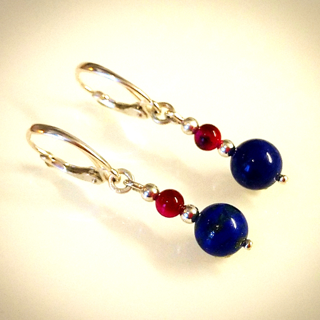 Strieborné náušničky sú ručne vyrobené zo šperkového striebra (925/1000) a z prírodných korálok z Lapis lazuli a ružového Tigrieho oka.