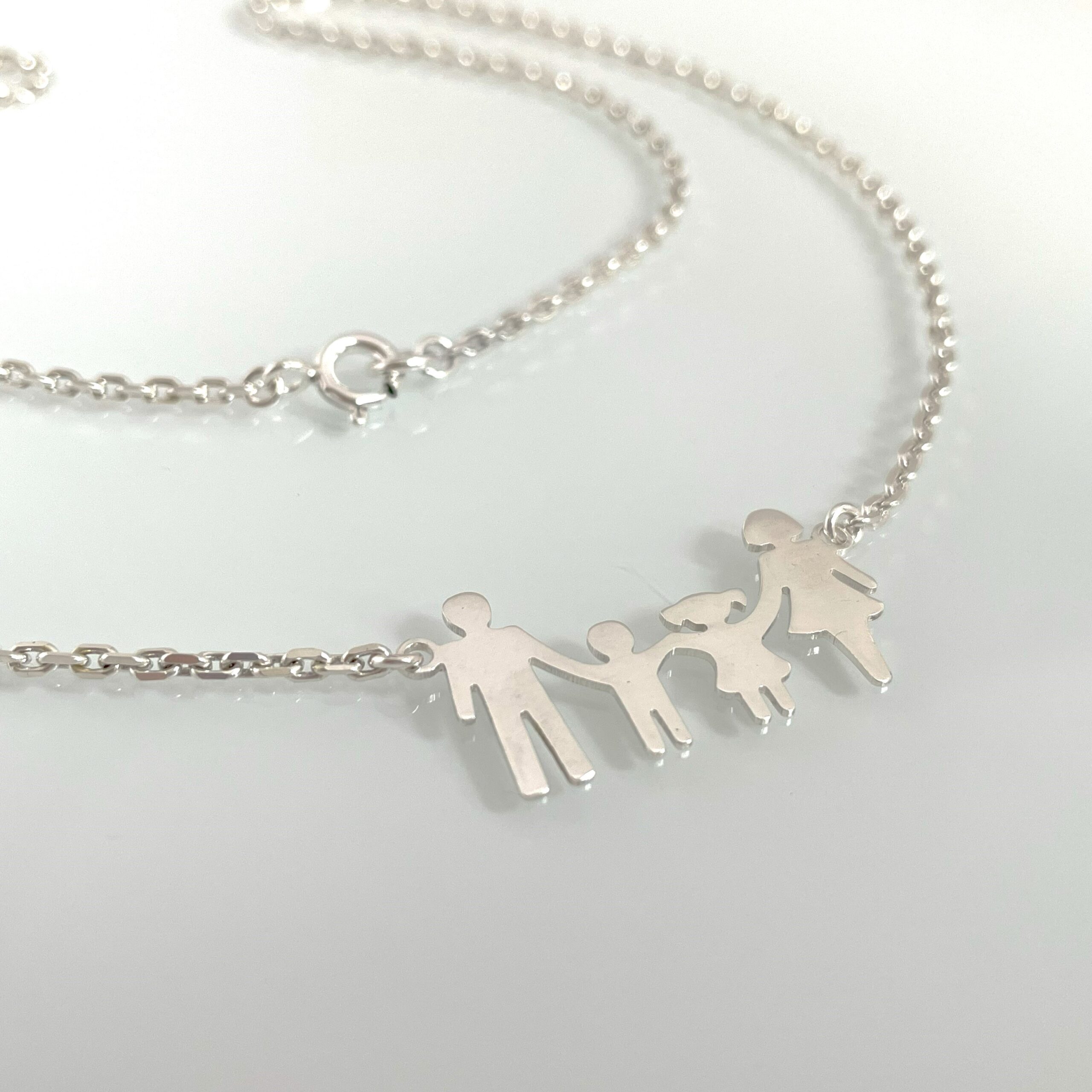 Náhrdelník je ručne vyrobený zo šperkového striebra (925/1000), z ktorého sú vypílené siluety matky, otca, syna a dcéry.