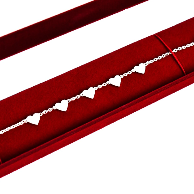 Strieborný náramok s piatimi srdiečkami je ručne vyrobený zo šperkového striebra 925/1000.
