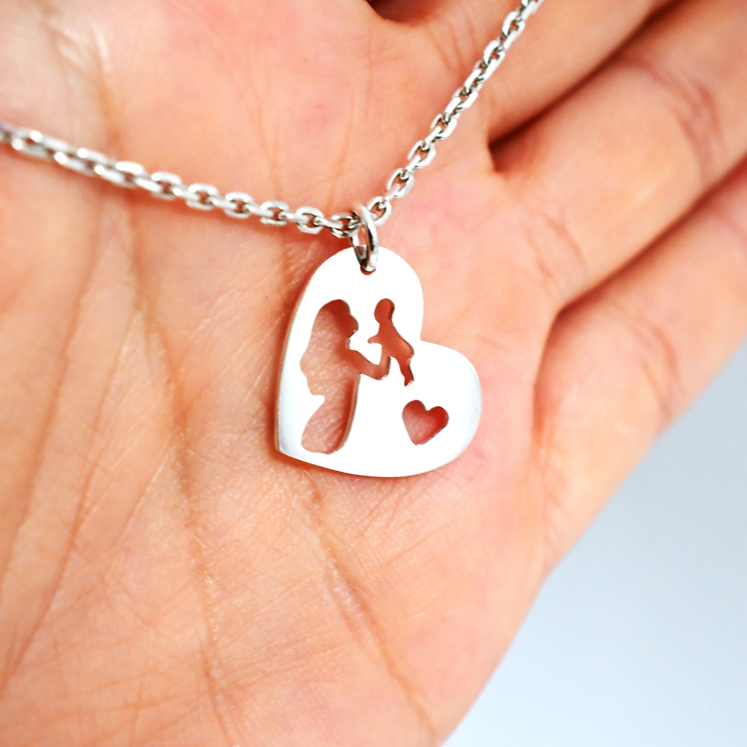Tento úžasný šperk, vyrobený s láskou a dôrazom na detail, obsahuje jemnú siluetu matky, ktorá drží v náručí svoje dieťa, vypílenú v prívesku v tvare srdca.