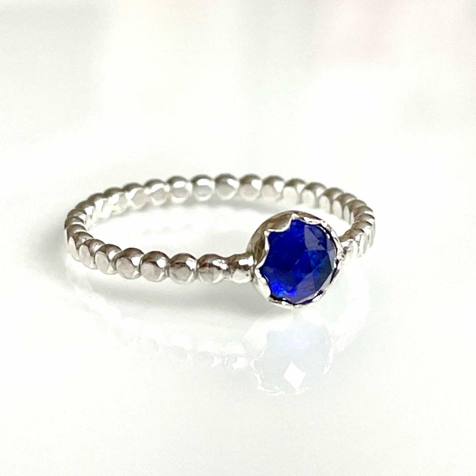 Strieborný prsteň s modrým fazetovaným zafírom – elegancia v jemných detailoch